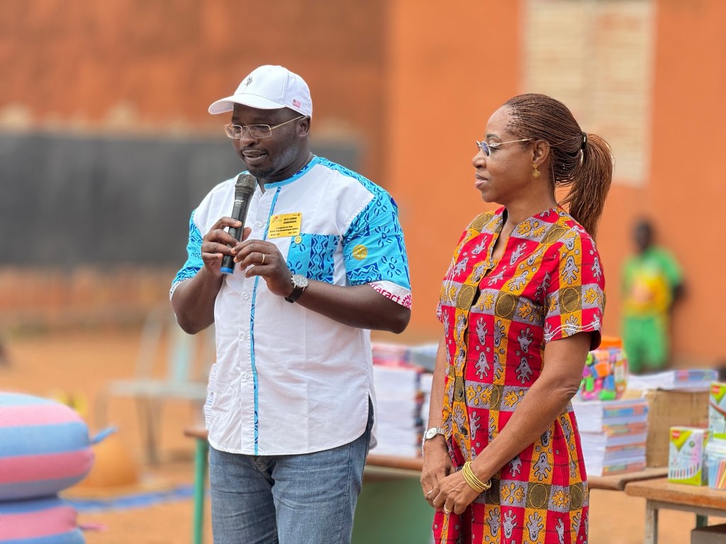 Sous un soleil radieux, élèves, parents et enseignants se sont réunis pour accueillir les Rotariens, dans une ambiance festive ponctuée de prestations artistiques. L’événement a réuni les chefs coutumiers et les autorités locales, tous venus célébrer ce partenariat exemplaire, fondé sur des valeurs de partage et de soutien à l’éducation. Ce don, composé de vivres destinés à la cantine scolaire et de kits scolaires, répond à un besoin pressant dans cette école où la cantine gratuite constitue un atout majeur pour inciter les enfants à rester en classe.
