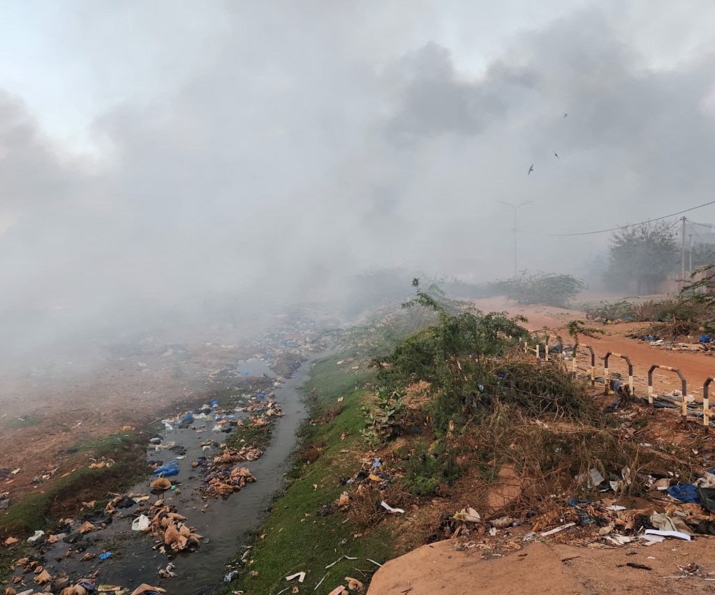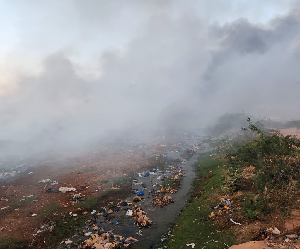 Chaque soir, des feux sont allumés, libérant une fumée épaisse et toxique. L’air devient irrespirable, les cendres s’infiltrent partout et les habitants suffoquent. Quand ce ne sont pas les fumées, ce sont les odeurs pestilentielles qui rendent la vie impossible.