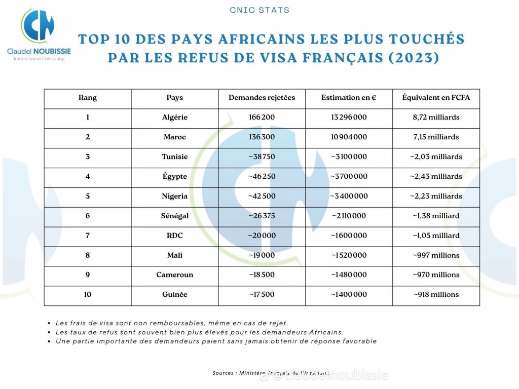 Le Visas Schengen : La France aurait encaissé plus de 159 milliards de FCFA grâce aux refus de visas aux Africains entre 2015 et 2025