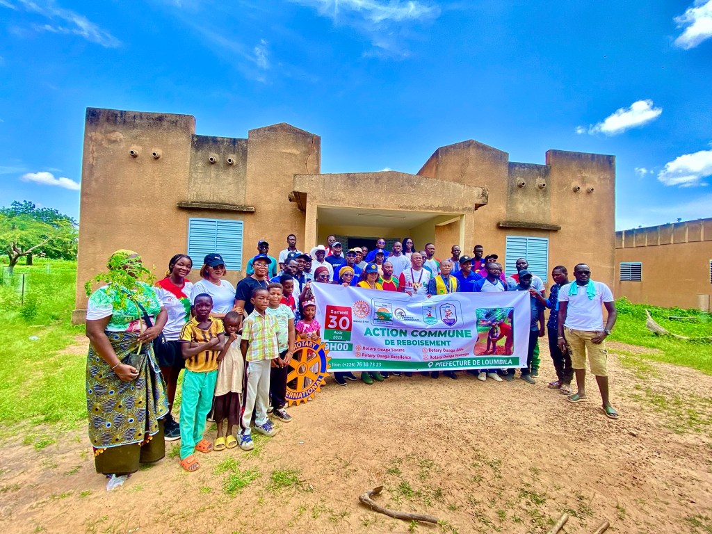 Loumbila 30 Aout 2025 , Burkina Faso – Les clubs Rotary Ouaga Yennenga, Ouaga Savane, Ouaga Élite et Ouaga Excellence se sont mobilisés ce week-end pour une opération de reboisement à la Préfecture de Loumbila. Au total, 200 plants ont été mis en terre, en présence des présidents et membres des clubs ainsi que du président de la délégation spéciale de la commune.