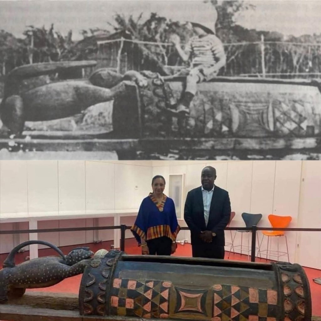 Sa restitution Ă la CĂŽte dâIvoire marque une Ă©tape importante dans le processus de retour des biens culturels africains conservĂ©s en Europe. Au-delĂ de sa valeur patrimoniale, le tambour est un symbole spirituel et politique majeur pour le peuple ĂbriĂ© (Atchan), oĂč il servait dâinstrument de communication communautaire.